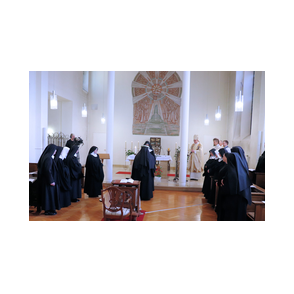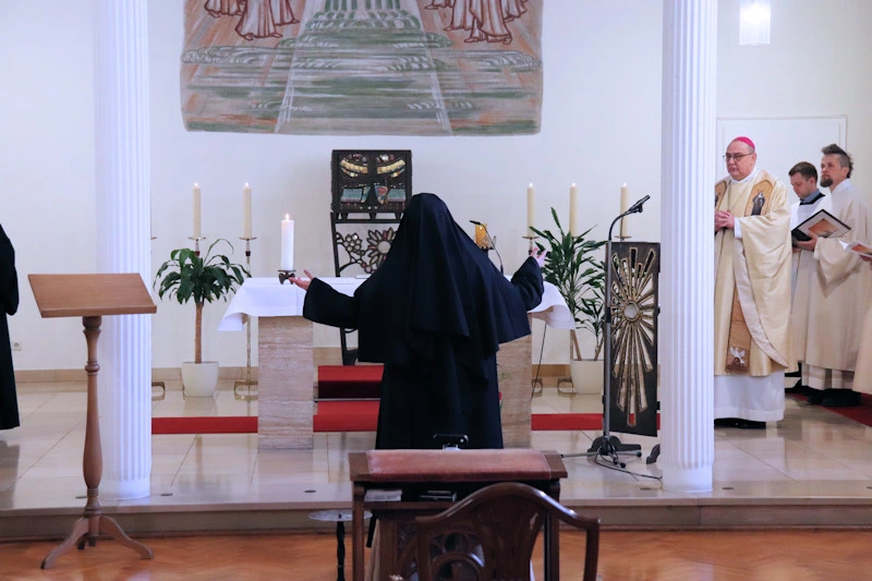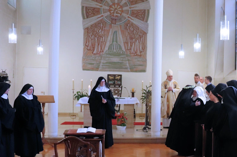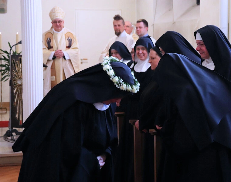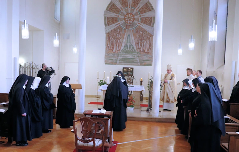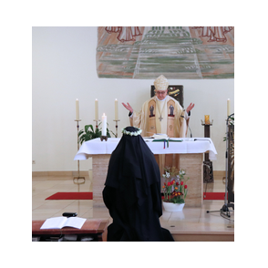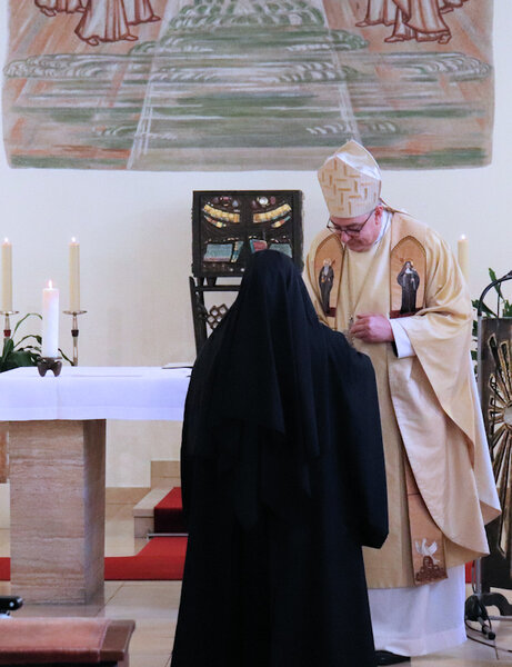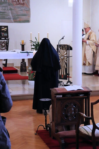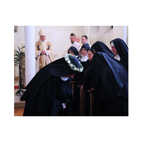 Am 9. Februar 2025 erlebten wir einen unvergesslichen Moment der Freude und des Glaubens, als unsere Sr. Josefine Schwitalla ihre Feierliche Profess ablegte und die Monastische Weihe empfing! Unser Bischof Dr. Dominicus Meier OSB stand der Feier vor. Umgeben von ihren Mitschwestern, Angehörigen und Freunden, strahlte die Zeremonie eine spirituelle Kraft aus, die uns alle berührte. Es war ein Fest der Hingabe und der Gemeinschaft, das die tiefe Verbundenheit und den unerschütterlichen Glauben unserer Sr. Josefine feierte. Ihre Entscheidung, ein Leben im Kloster zu führen, ist nicht nur ein persönlicher Schritt, sondern auch eine inspirierende Botschaft an alle, die Kraft des Geistlichen Lebens und des Dienstes an Gott und den Menschen zu leben. Wir sind voller Dankbarkeit und Freude, diesen besonderen Tag mit ihr zu teilen!