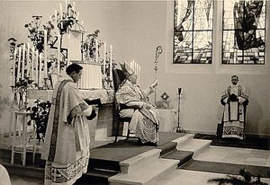 Der Grundstein für den Neubau der Hauskapelle wurde am 31. Juli 1953 gelegt und von Erzbischof Berning gesegnet. Bei Ausgrabungen unter dem Hochaltar stieß man dabei auf eine lateinische Urkunde aus dem Jahr 1898. Die feierliche Einweihung der neuen Kapelle erfolgte am 11. Juli 1954. In den folgenden Jahren konnte auch der Wiederaufbau der übrigen Klosteranlage abgeschlossen werden.