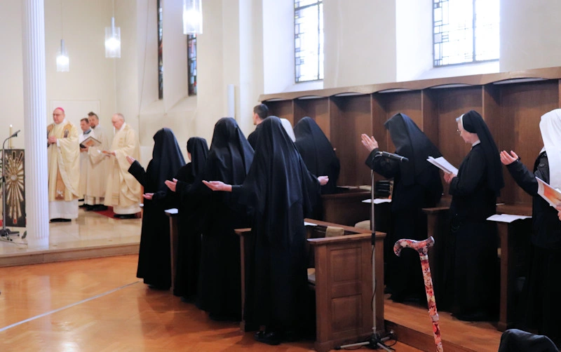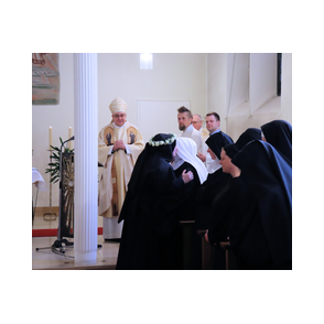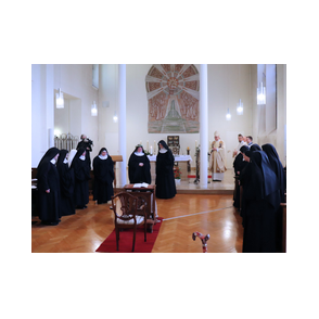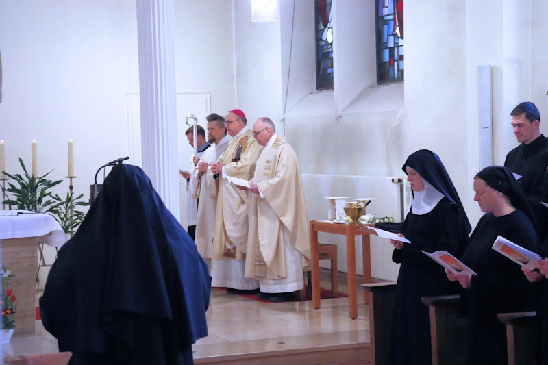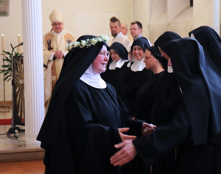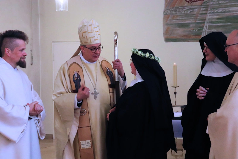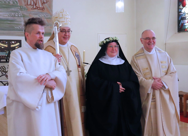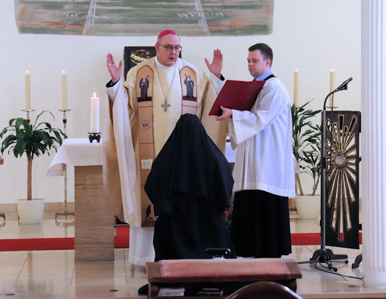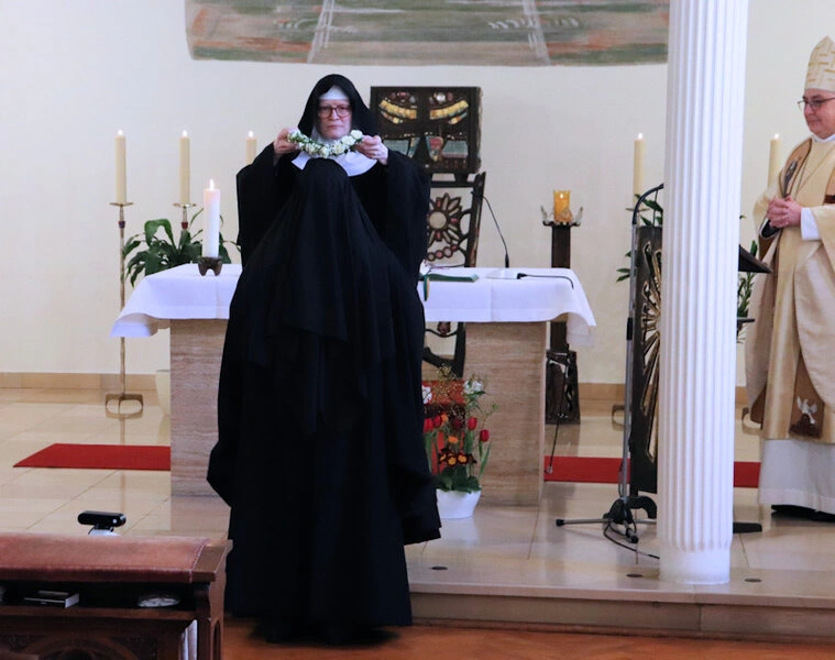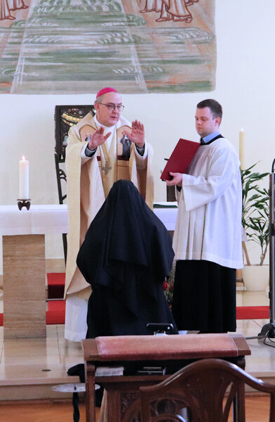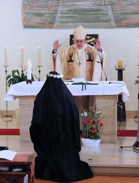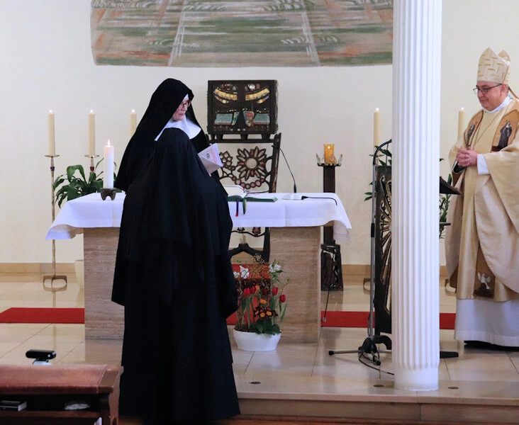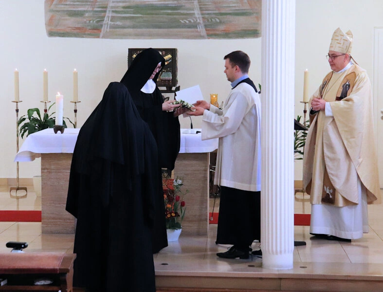 Am 9. Februar 2025 erlebten wir einen unvergesslichen Moment der Freude und des Glaubens, als unsere Sr. Josefine Schwitalla ihre Feierliche Profess ablegte und die Monastische Weihe empfing! Unser Bischof Dr. Dominicus Meier OSB stand der Feier vor. Umgeben von ihren Mitschwestern, Angehörigen und Freunden, strahlte die Zeremonie eine spirituelle Kraft aus, die uns alle berührte. Es war ein Fest der Hingabe und der Gemeinschaft, das die tiefe Verbundenheit und den unerschütterlichen Glauben unserer Sr. Josefine feierte. Ihre Entscheidung, ein Leben im Kloster zu führen, ist nicht nur ein persönlicher Schritt, sondern auch eine inspirierende Botschaft an alle, die Kraft des Geistlichen Lebens und des Dienstes an Gott und den Menschen zu leben. Wir sind voller Dankbarkeit und Freude, diesen besonderen Tag mit ihr zu teilen!