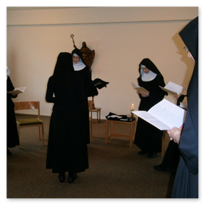 In der feierlichen (ewigen) Profess antworten wir öffentlich auf den Ruf Gottes und weihen ihm unser ganzes Leben. Der heilige Benedikt fasst diese Lebenshingabe in den drei Gelübden der Beständigkeit, des klösterlichen Lebenswandels und des Gehorsams zusammen. In ihnen sind auch die evangelischen Räte der gottgeweihten Jungfräulichkeit und der Armut enthalten.